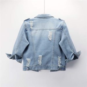 Women Boyfriend Washed Crop Denim Jean Jacket Coat