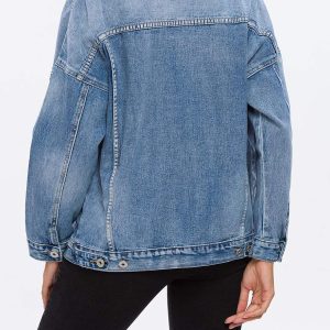 Women Vintage Washed Denim Jacket Long Sleeve Classic Loose Jean Trucker Jacket D003