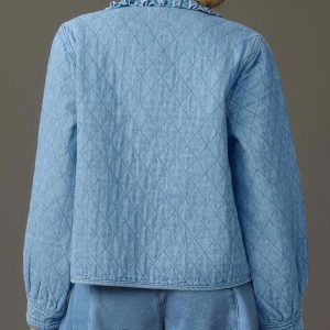 Women d Jean Jacket Casual Button Up Denim Overshirt Trendy Long Sleeve Denim Jacket Coat