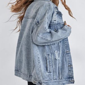 Denim Jacket for Women Ripped Jean Jacket Boyfriend Long Sleeve Trucker Coat