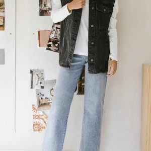 Straight Leg Jeans for Women High Waisted Jeans Frayed Baggy Pants Raw Hem Loose Stretchy Cropped Wide Leg Jeans