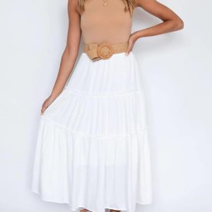 Maxi Skirt for Women Summer Boho Elastic High Waist Pleated A-Line Flowy Ruffle Swing Tiered Long Beach Skirt Dress