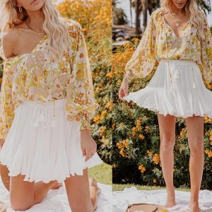 Women’s Boho Ruffle Skirt Floral Tiered Mini Skirts with Shorts Underneath