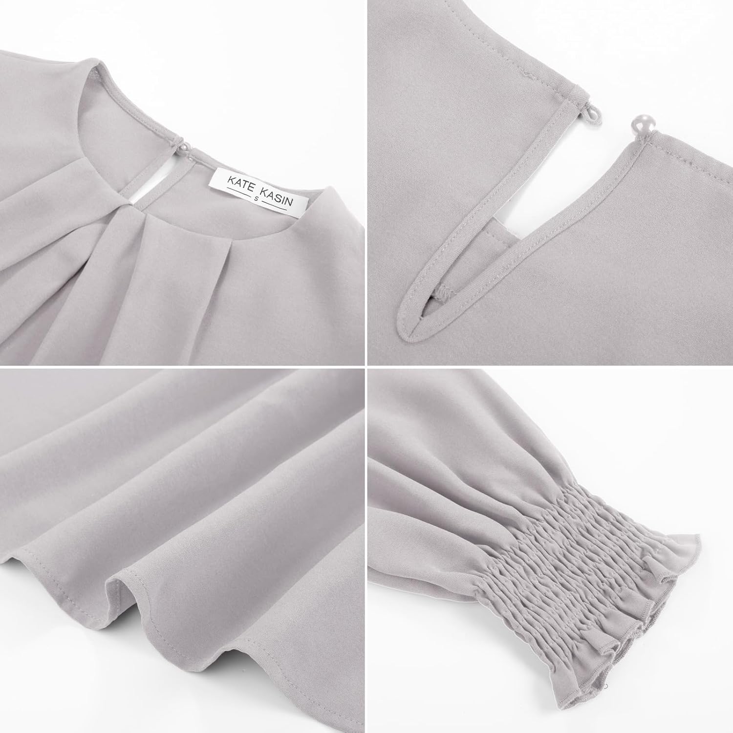 - Chic Design: Classic crewneck, solid pattern, pullover style, keyhole back, puff sleeves, cute, elegant, casual Loose Fit Design. The ruffled smocked and pleated front add depth and elegance, while the puff sleeves make a stylish statement